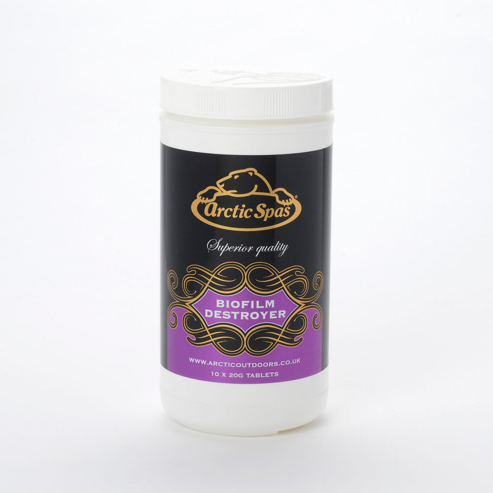 Biofilm is extremely resistant against chlorine and can harbour bacteria and other pathogens. Arctic Spas Biofilm Destroyer is a highly effective cleansing agent that penetrates the biofilm and helps remove the bacteria and film from your spas pipe work and hosing.