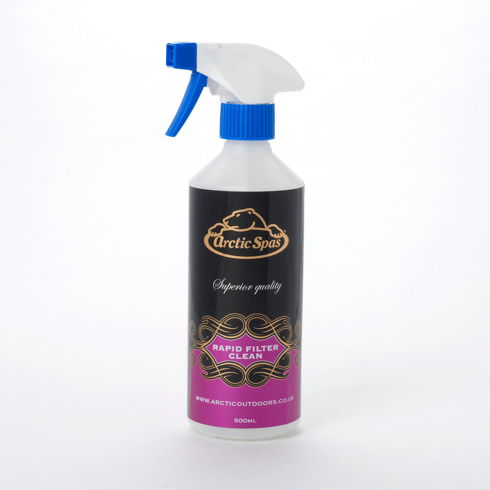 Use Arctic Spas Rapid Filter Clean as part of a regular cleaning routine for hot tub and splasher pool paper filter cartridges.